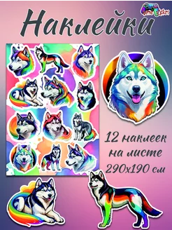 Наклейки Хаски Радужные