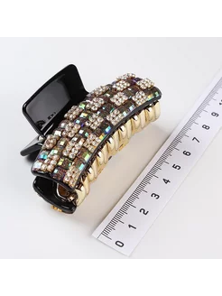 Краб для волос со стразами прямоугольники 5,5 см чёрный