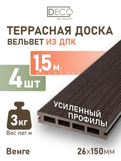 Террасная доска из ДПК 26х150х1500 мм, декинг премиум, 4 шт