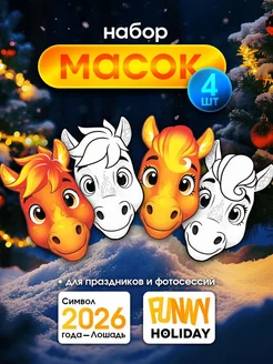 Набор карнавальных масок Лошадь символ 2026 4 шт картон