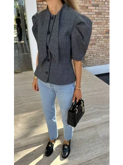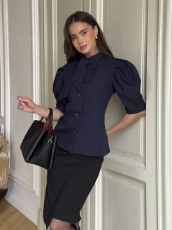Жакет пиджак приталенный укороченный с коротким рукавом