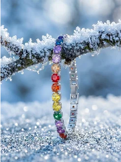 Теннисный браслет с разноцветными фианитами