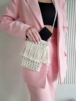 Сумка плетеная для телефона через плечо летняя кросс-боди