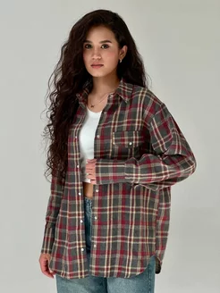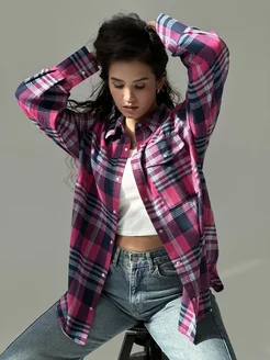 Рубашка в клетку оверсайз удлиненная на заклепках