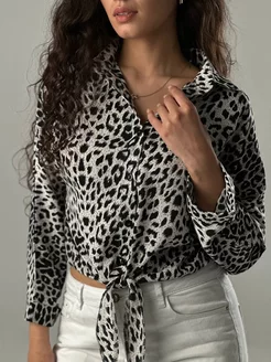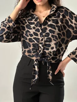 Блузка офисная рубашка леопард шелковая