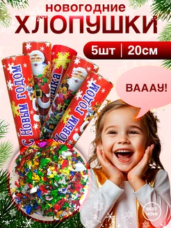 Хлопушки новогодние для праздника с конфетти 5 штук 20см