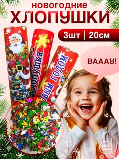 Хлопушки новогодние для праздника с конфетти 3 штуки 20см