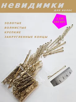 Невидимки для волос волнистые золотые маленькие 3,5 см 50 шт