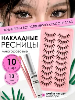 Набор ресниц с клеем и пинцетом аниме лисий 10-13 мм