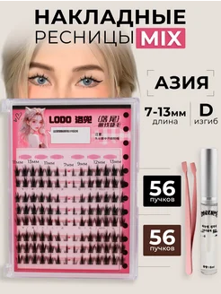 Набор ресниц с клеем и пинцетом пучки аниме черные + коричне…