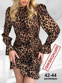 Платье леопард вечернее мини