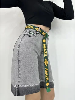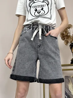 Шорты бермуды джинсовые с высокой посадкой на резинке