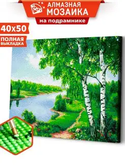 Березы у реки Алмазная мозаика на подрамнике 40х50