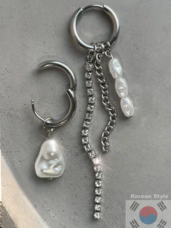 Серьги кольца с подвесками жемчужные