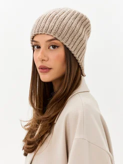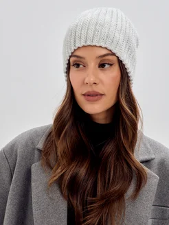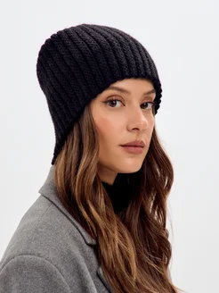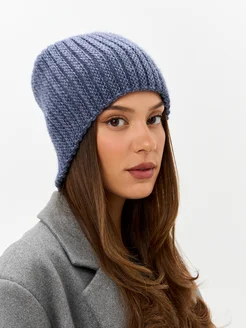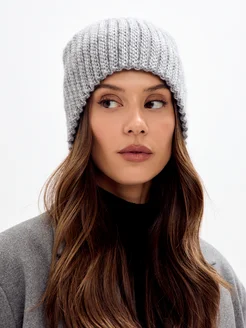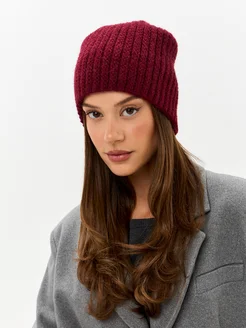 Шапка вязаная бини без отворота тыковка зимняя