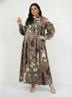 Платье рубашка оверсайз длинный рукав миди большой размер