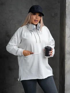 худи больших размеров без начеса удлиненное с капюшоном