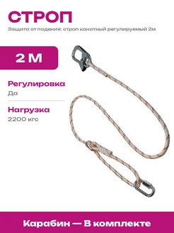 Строп стальной полиамидный 2м, нагрузка 2200кгс, 2 карабина