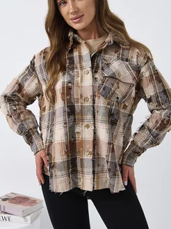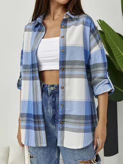 Рубашка демисезонная в клетку оверсайз на осень