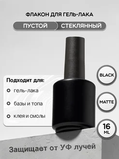 Флакон пустой с кисточкой для гель-лака чёрный матовый 16 мл