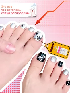 Накладные ногти для ног с дизайном и клей