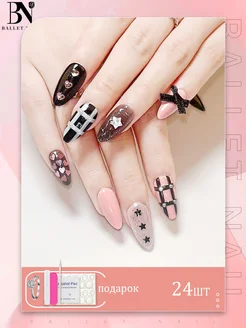 Накладные ногти длинные y2k с бантиком клей