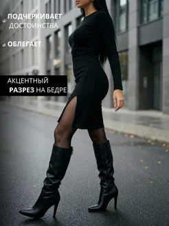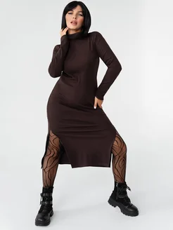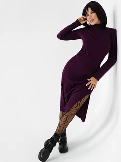 Платье женское лапша теплое короткое с разрезом