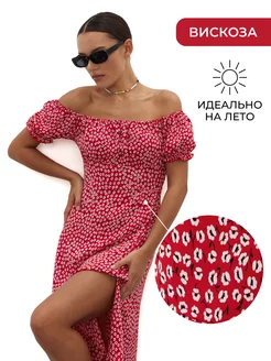 Платье весеннее вечернее с открытыми плечами миди крестьянка