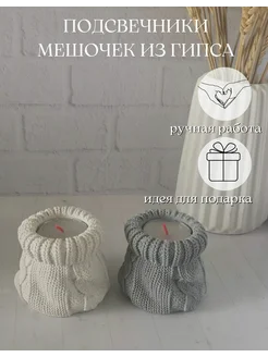 Подсвечники новогодние мешочки из гипса набор 2шт