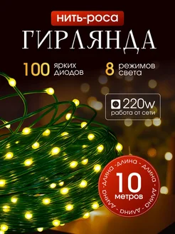 Гирлянда роса светодиодная на елку 10 метров желтая