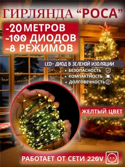 Гирлянда роса светодиодная на елку 20 метров желтая