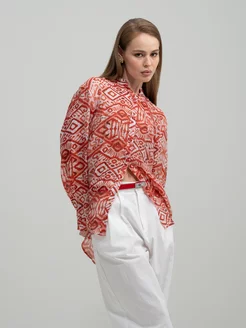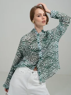 Рубашка блузка с принтом оверсайз нарядная в офис