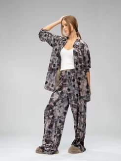 Костюм брючный двойка оверсайз велюровый в пижамном стиле