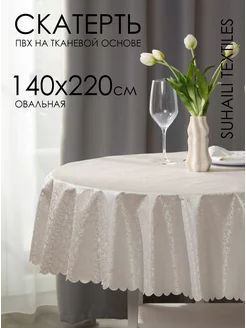 Скатерть клеенка ПВХ на тканевой основе 140х220 см овальная