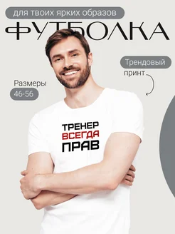 Футболка белая с принтом Тренер всегда прав