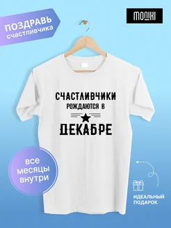 Футболка белая с принтом Счастливчики рождаются в декабре