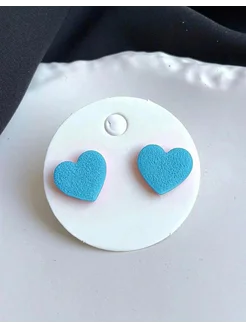 Серьги сердечки голубые бижутерия