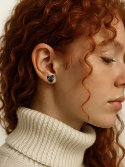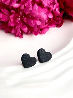 Серьги сердечки черные бижутерия