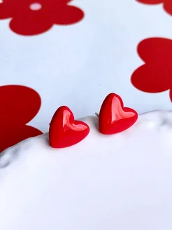 Серьги сердечки красные бижутерия