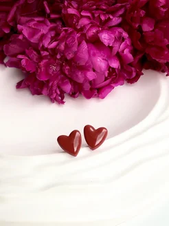 Серьги сердечки бордовые бижутерия
