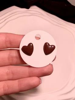 Серьги сердечки коричневые бижутерия