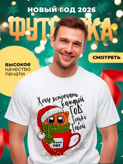 Прикольная футболка парню на новый год 2026 "с тобой"
