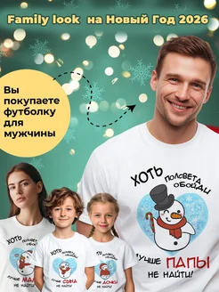Футболка папе на новый год 2026 "family look снеговик"