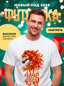 Футболка на новый год 2026 символ года "огненная лошадь"