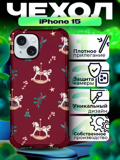 Чехол на IPHONE 15 силиконовый новый год лошадки