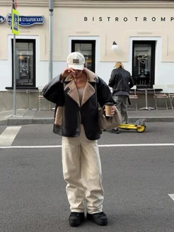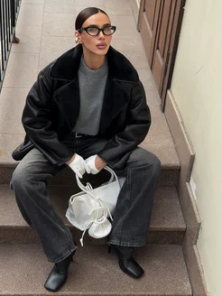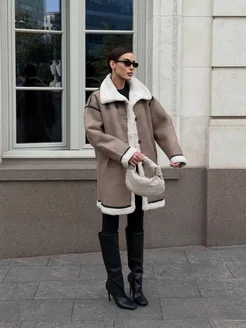 Дубленка авиатор оверсайз короткая осень-зима