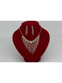 Колье и серьги со стразами золото
