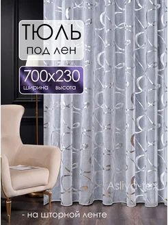 Тюль 700х230 готовый на ленте под лен с рисунком