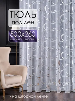 Тюль 500х260 готовый на ленте под лен с рисунком