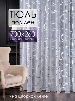 Тюль 700х260 готовый на ленте под лен с рисунком